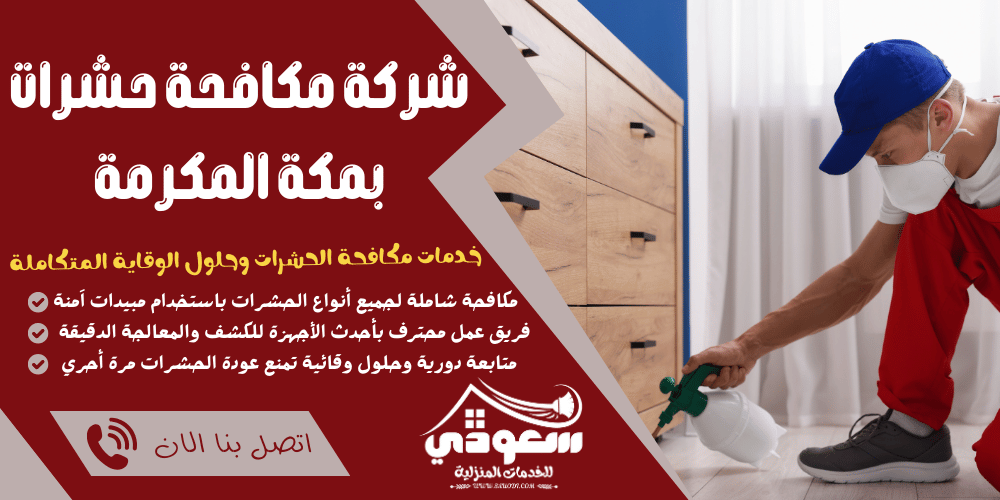 شركة مكافحة حشرات بمكة مع الضمان وبأحدث المبيدات دائما متواجدة إلى جانبك فإذا كنت تعاني من تواجد الحشرات داخل المنزل ولا تستطيع التخلص منها حتى باستخدام المبيدات التي توجد بالصيدليات تغيب الحشرات فترة من الوقت وتجدها مرة أخرى في تلك الحالة أنت بحاجة إلى شركة رائدة في مجال إبادة الحشرات وفى تلك الحالة فإن شركة سعودي هي أفضل الشركات التي تقوم بالتخلص من الحشرات بجميع أنواعها بداية من الصراصير التي تجتاح كل البيوت وأيضا البق الذي يصعب التخلص منه ويحتاج إلى عدة دورات من الرش المتكرر حتى يتم التخلص منه وأيضا نقضى على الوزغ والخنافس وغيرها من أنواع الحشرات الضارة التي يمكن أن تتسبب في موت الإنسان لا قدر الله.